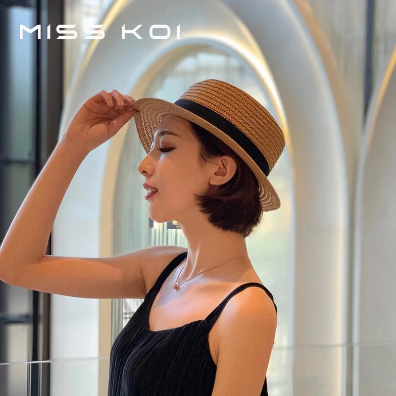🔥 MISSKOI Du Lịch Nữ Chống Nắng Du Lịch Flat Top Hat Nữ Anh Mũ Chống Nắng Kỳ Nghỉ Phong Cách Hàn Quốc Mũ Rơm Tươi đang giảm giá!