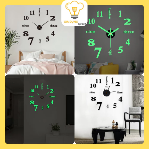 - Đồng hồ dán tường 3D dạ quang: Phát sáng trong bóng tối, thiết kế bắt mắt, phù hợp với trẻ nhỏ.