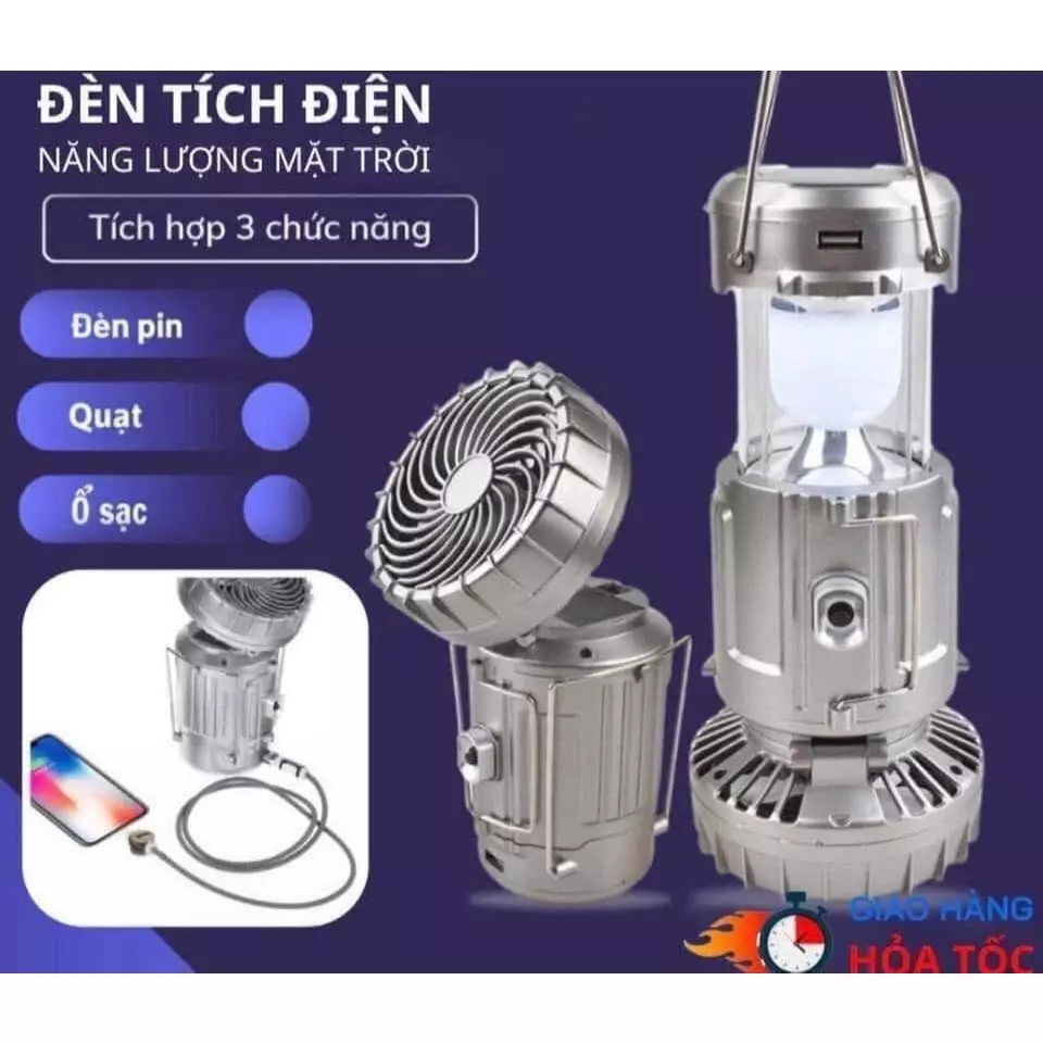 🔥 Đèn Năng Lượng Mặt Trời 3in1 Năng Lượng, Tích Hợp Quạt, Đèn Bão Du Lịch Đi Câu Cá Cắm Trại đang giảm giá!