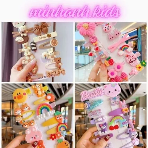Set kẹp tóc này bao gồm nhiều mẫu mã và kiểu dáng khác nhau, giúp bạn có thể lựa chọn phù hợp với sở thích của bé. Sản phẩm được làm từ chất liệu nhựa chất lượng cao, không gây kích ứng da đầu hay dị ứng.