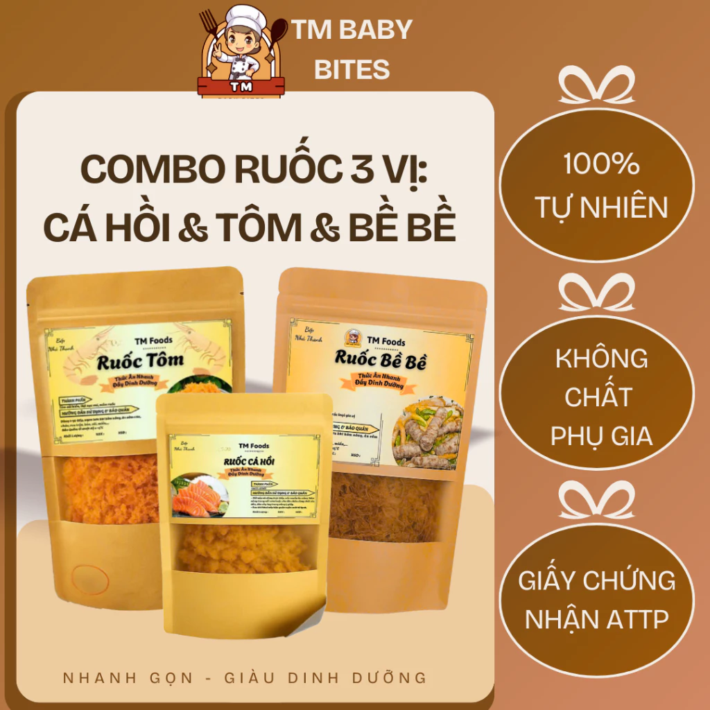 🔥 Combo Ruốc ăn Dặm Cho Bé 3 Vị: Cá Hồi & Tôm Thịt & Bề Bề An Toàn, Tiện Lợi {Mua 500g Tặng 50g Ruốc Tôm} đang giảm giá!