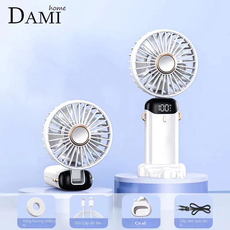 🔥 Quạt cầm tay mini gấp gọn 5 cấp độ gió sạc pin tiện dụng, dung lượng pin đèn led hiển thị % pin xoay 90 độ đang giảm giá!