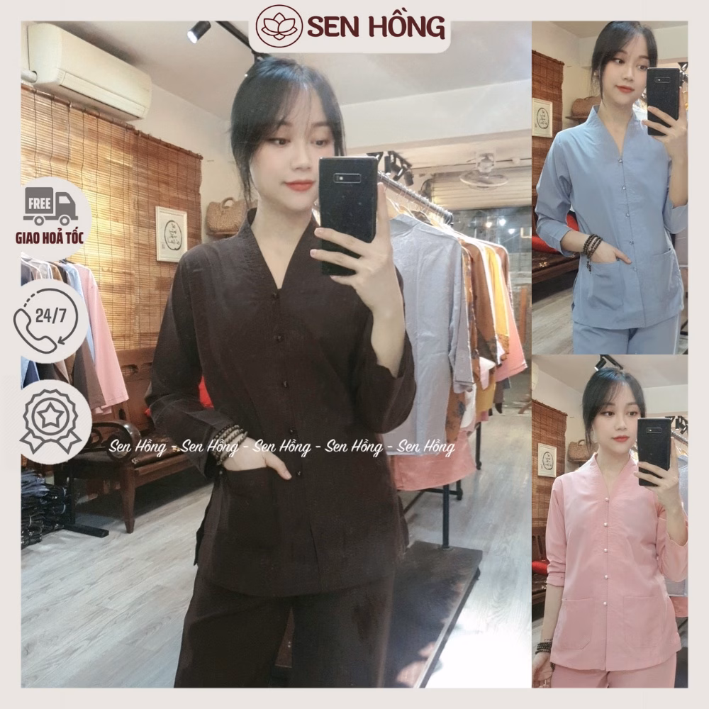 🔥 [Mã FATHANG5 giảm 10K đơn 50K] ??quần áo phật tử giá rẻ Bộ bà lai không thêu có túi 2 bên, cài cúc nhựa nhẹ nhàng đang giảm giá!